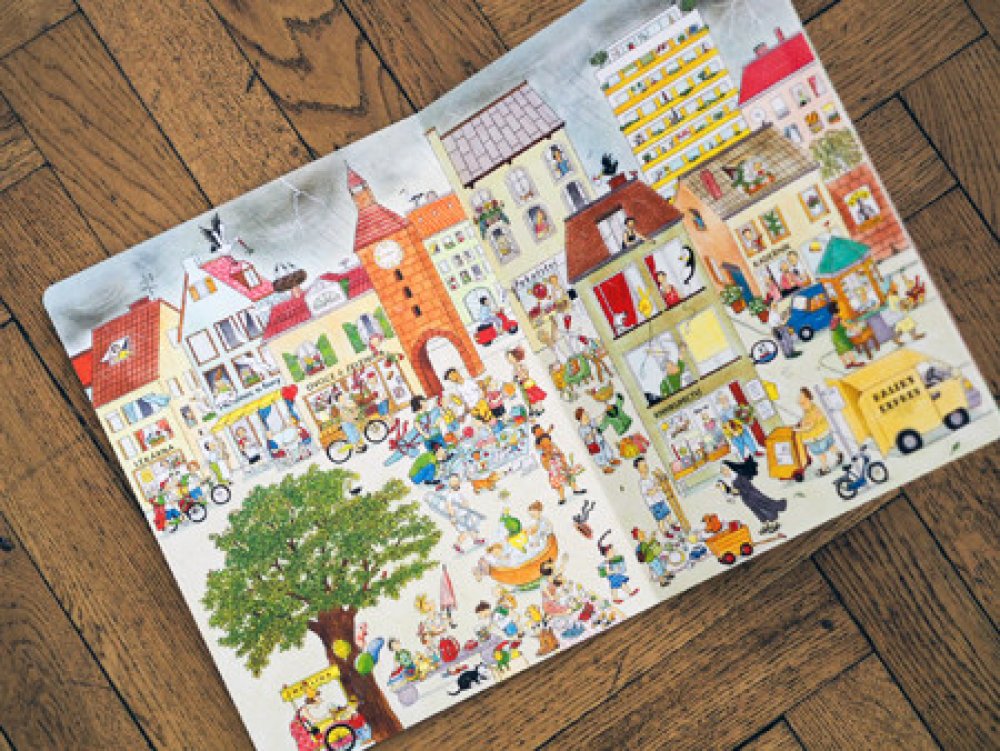 Obrázky vypráví příběhy všedního dne, obratně a vtipně se tu splétají dohromady drobné epizody. Malý čtenář může v knížce hledat postavičky a zvířátka a sledovat, co dělají od první do poslední stránky. Kudy chodí teta Květa, kde si kluk Ondra bude hrát s kamarády, co dělá ve městě liška. Stává se „malým detektivem", který zjišťuje například, proč Pepa upadl a jak se dostal klobouk na strom, a luští mnoho dalších hádanek. Knížka podporuje pozorovací schopnosti a podněcuje fantazii, rozvíjí jazyk a rozšiřuje slovní zásobu.
