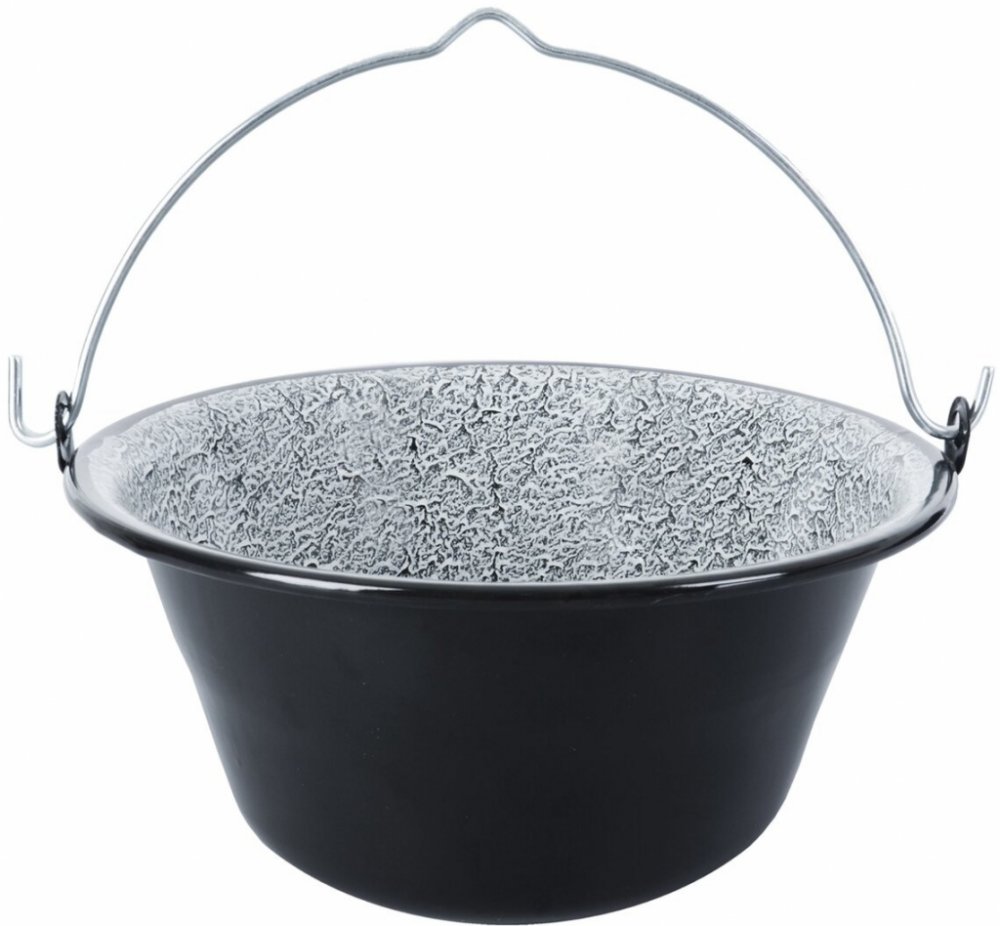 Kotlík má ocelový základ pokrytý smaltem, což je tavenina podobná sklu a vytvoří tak odolný, zcela zdravotně nezávadný povrch. Lze jej zavěsit buď na samos...