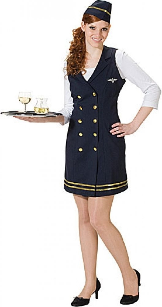 Krásný tmavěmodrý kostým letušky se zlatým zdobením. Kostým obsahuje šaty a čepičku. Doba dodání 5 pracovních dnů.