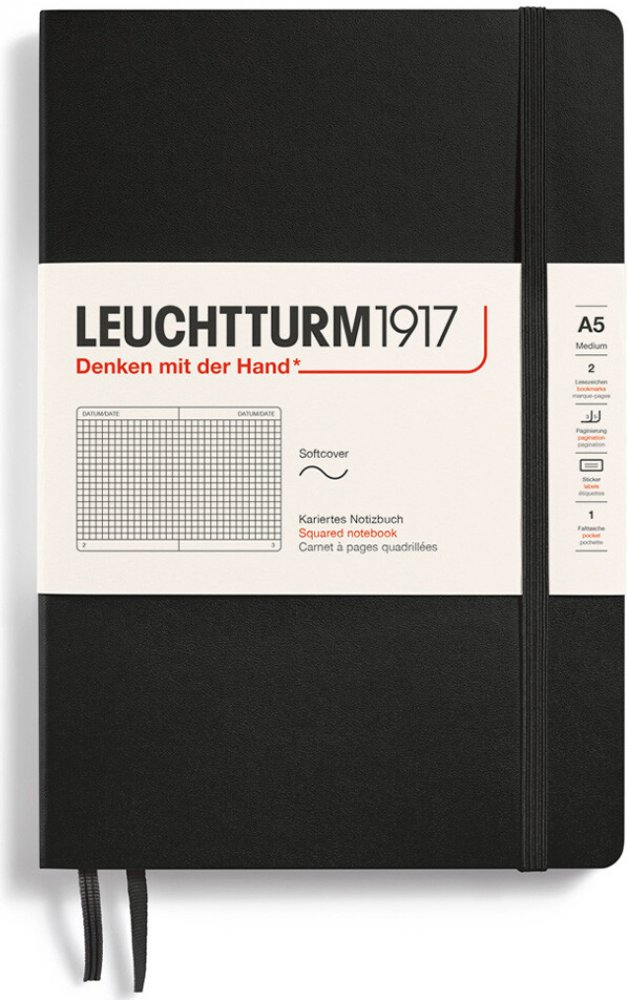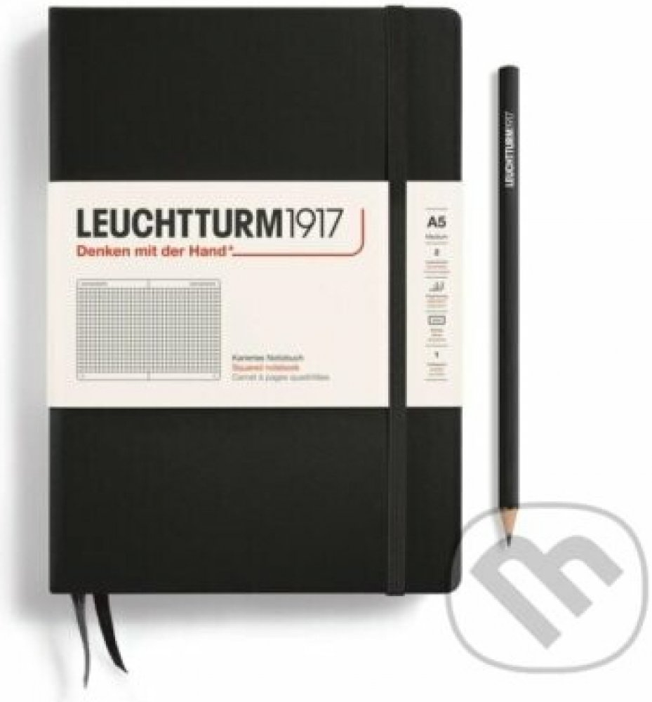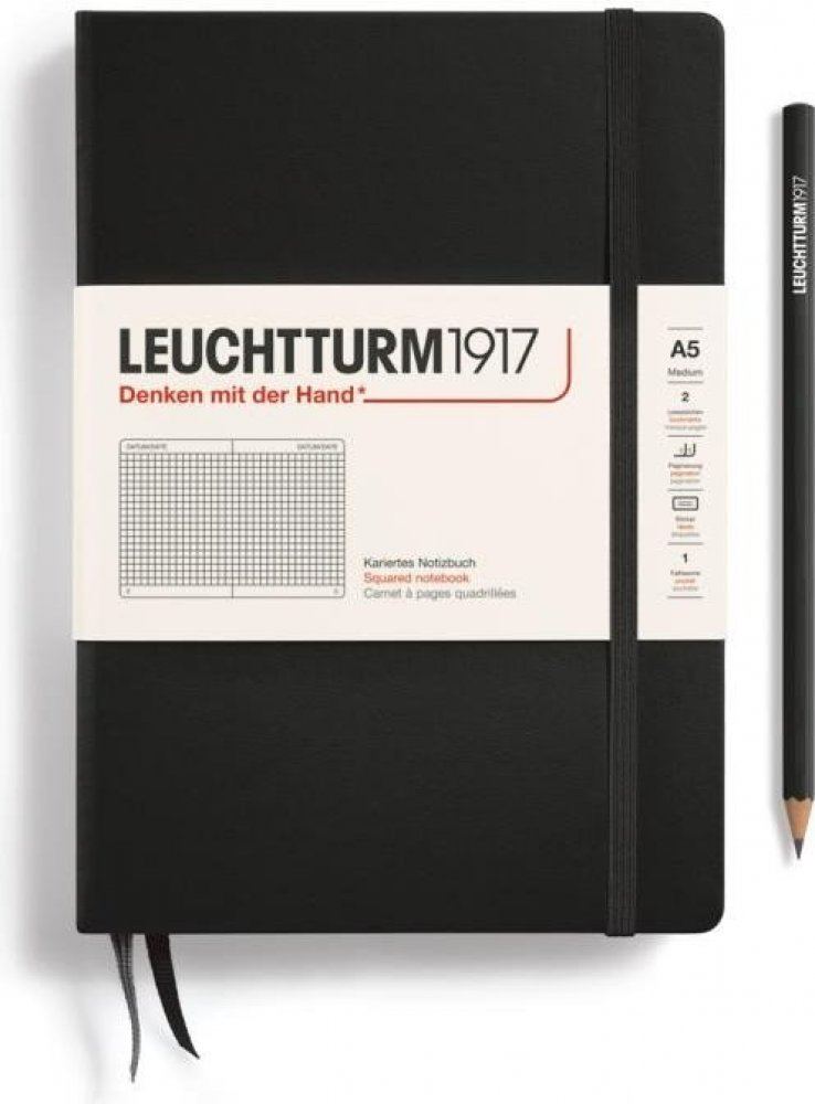 Leuchtturm1917 Zápisník Black Medium A5 čtverečkovaný