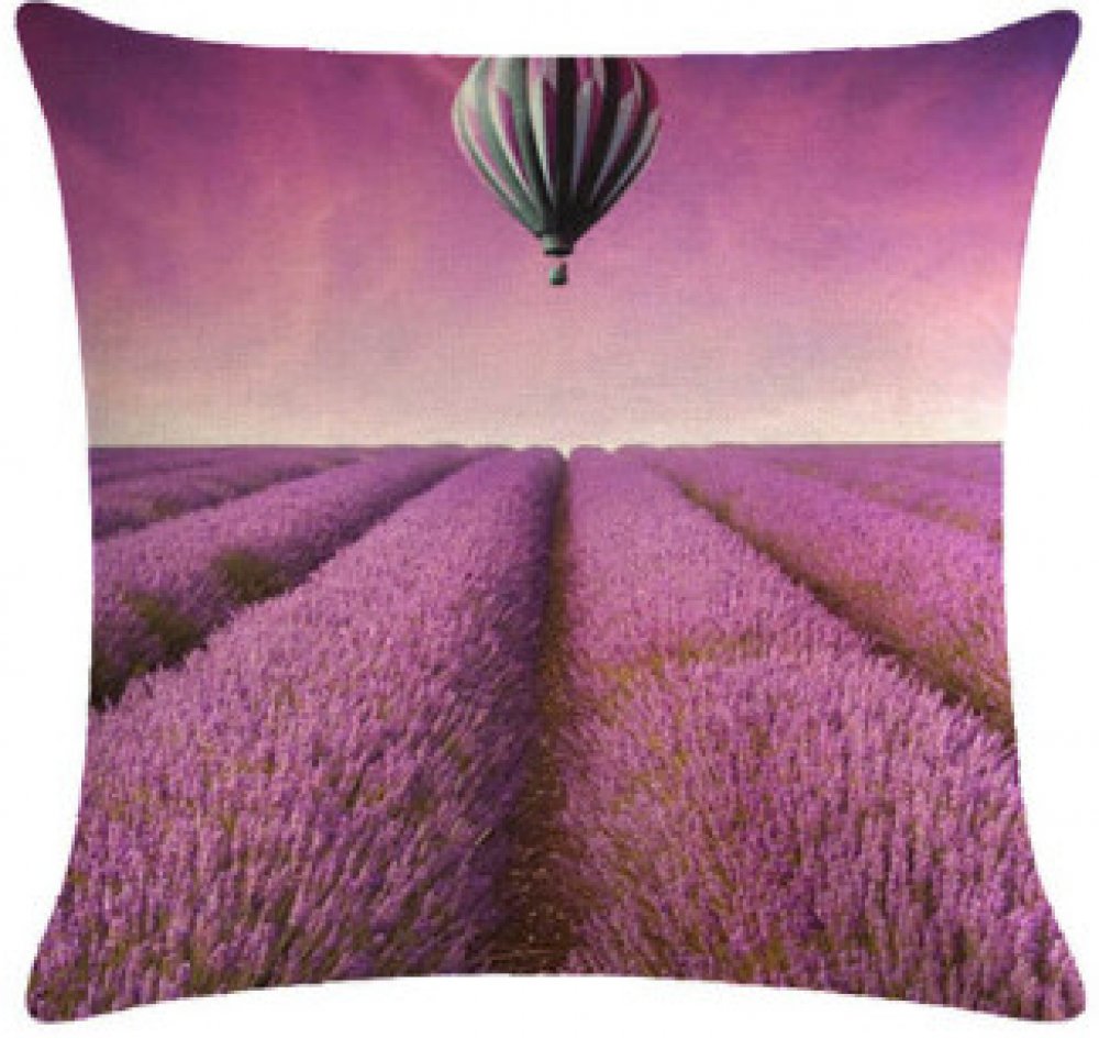 Povlak na polštář s romantickým fotopotiskem levandule. Polštář je vyrobený ze lnu.