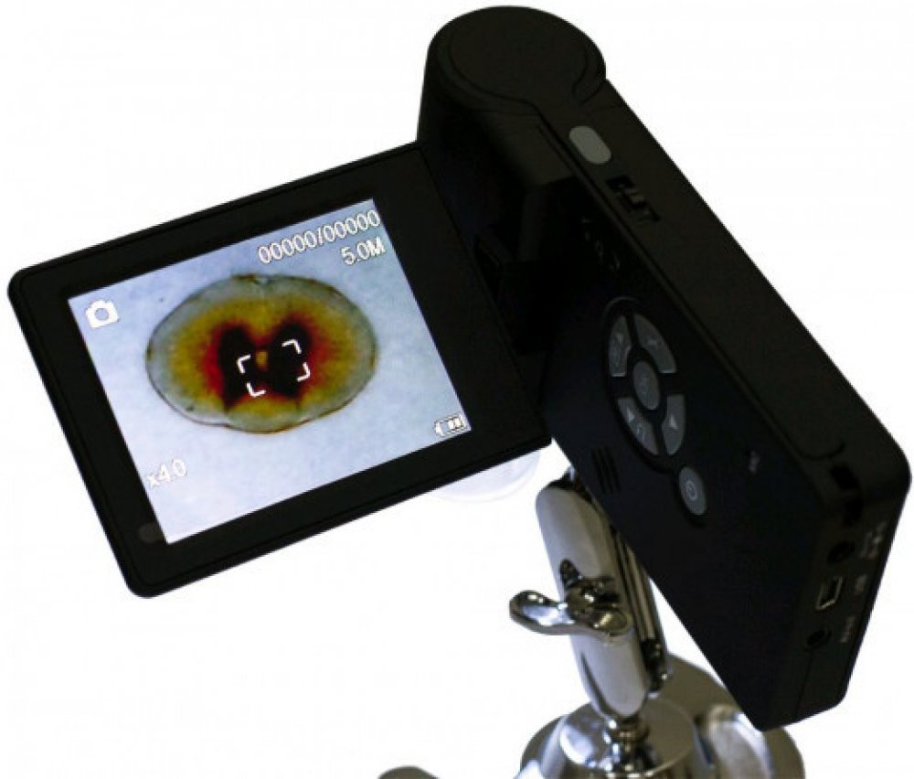 Mikroskop Levenhuk DTX 500 LCD můžete pomocí USB kabelu (je součástí soupravy), snadno připojit k PC a všechny soubory vytvořené během pozorování zkopírovat na pevný disk. Tento model je dále vybavený AV výstupem, který umožňuje sledovaný obraz v reálném čase přenášet na obrazovku televizoru nebo do projektoru.