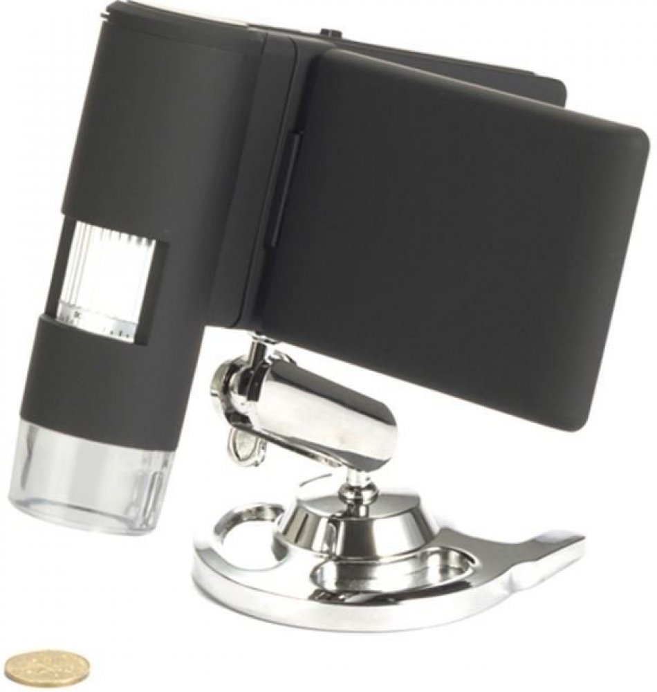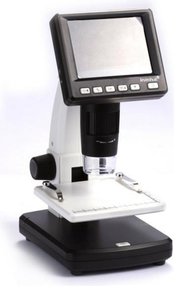 Digitální mikroskop pro pozorování povrchů vzorků s vestavěným barevným 3,5" LCD displejem a zvětšením 20x-500x.