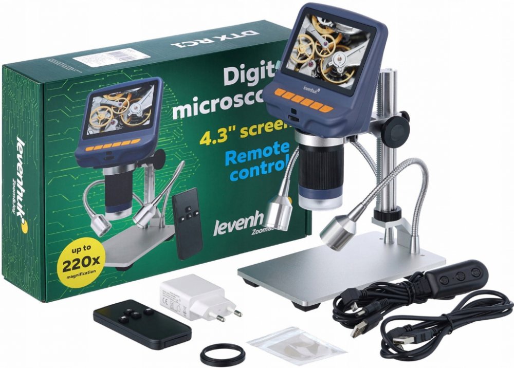 Dálkově ovládaný mikroskop Levenhuk DTX RC1 je moderní digitální optický přístroj, který je nepostradatelný při práci se šperky, hodinovými mechanismy, deskami s elektronickými obvody a dalšími malými a složitými předměty. Díky bezdrátovému dálkovému ovládání lze hlavní funkce mikroskopu používat na značnou vzdálenost. To je obzvláště praktické při prezentacích a skupinovému výzkumu.
