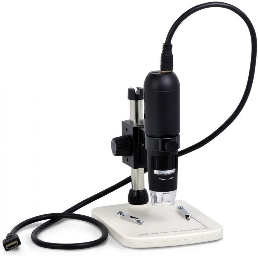 Zvětšení je plynule nastavitelné v rozmezí 10x–200x a mechanismus hrubého zaostření pracuje bez trhavých pohybů a vůle. Pokud není dostatečné vnější osvětlení, používá se přisvícení integrovaným světelným zdrojem. Ten se skládá z 8 jasných LED těles, která zajišťují rovnoměrné nasvícení preparátů. Osvětlení je napájeno síťovým adaptérem nebo kabelem USB.