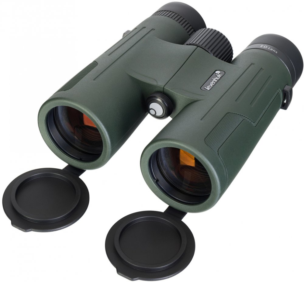 Binokulární dalekohled 10x42, ED sklo, střechové hranoly BaK-4, antireflexní vrstva, IP67 s plněním dusíkem, min. zaostření 3,5m, pouzdro.