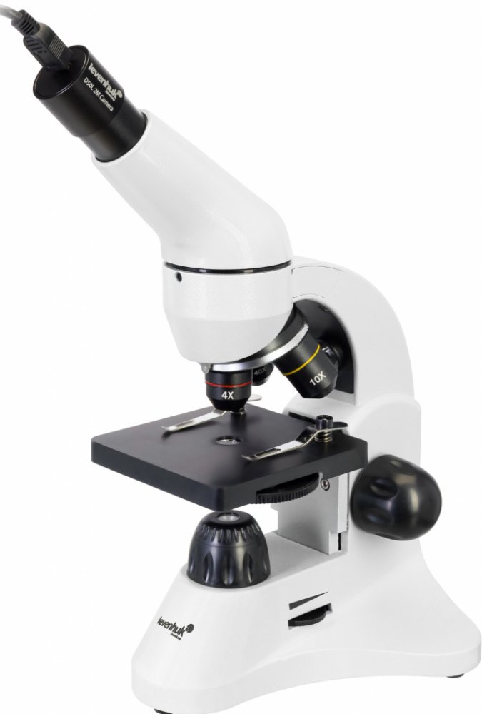 Podrobnosti o produktu Digitální mikroskop Levenhuk Rainbow D50L Moonstone Součástí sady jsou tři objektivy: 4x, 10x a 40xs. Nejvýkonnější objektiv je vybaven speciálním pružinovým mechanismem, který chrání optiku před mechanickým poškozením. I když tedy při zaostřování objektiv náhodně spustíte příliš nízko, odpružená čočka se mírně zatáhne a zabrání tak poškození optiky nebo preparátu.