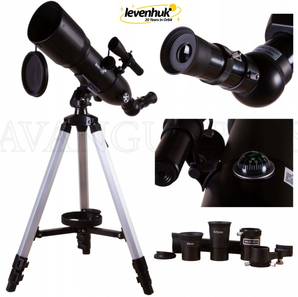 Sada obsahuje okuláry, Barlowovu čočku i diagonální zrcadlo. Je dodán se zabudovaným kompasem a přepravní brašnou. Můžete ji nosit na rameni nebo v ruce. Teleskop Skyline Travel 80 bude skvělým dárkem pro všechny vášnivé objevitele vesmírných krás.
