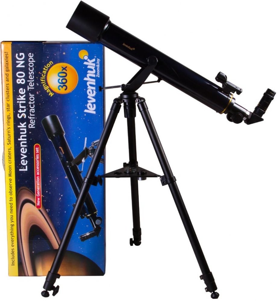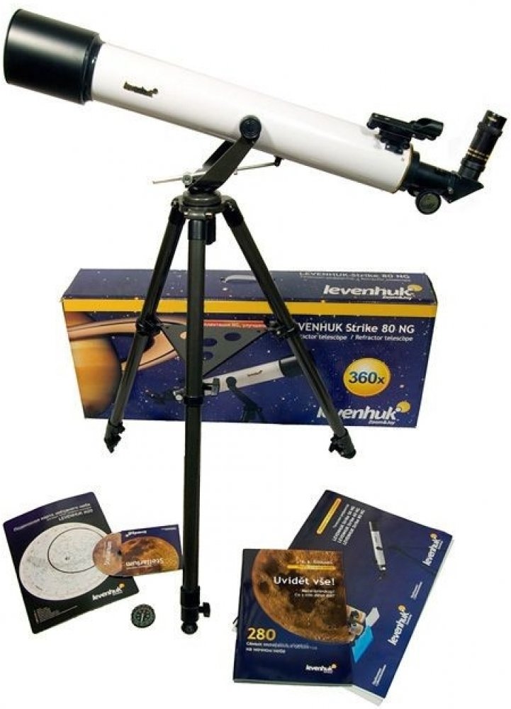 Součástí sestavy teleskopu je veškeré potřebné příslušenství, díky čemuž může i amatérský astronom provádět úžasná pozorování. Pomocí barevně ilustrovaných příruček a software bude i neškolený pozorovatel schopen na obloze najít hledaný objekt. Tato bohatá sestava je doplněna perfektním provedením. Nejlepší levný dalekohled Levenhuk Strike 80 NG se dodává v atraktivní barevné krabici, a představuje tak ideální dárek, který díky svému zajímavému vzhledu bude středem pozornosti na každé oslavě a nového majitele potěší svými širokými možnostmi.