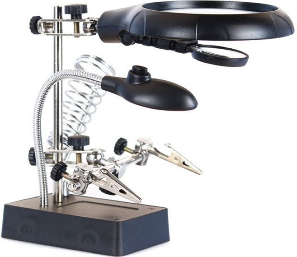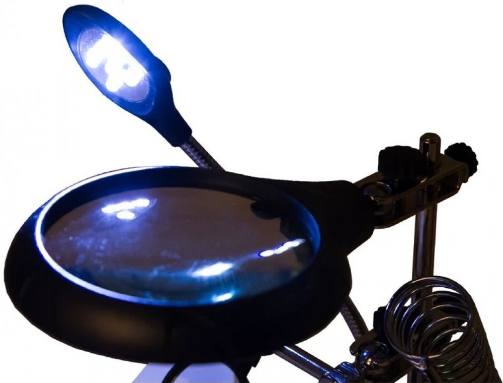 Pomocí dvou čoček o průměru 90 mm a 34 mm můžete dosáhnout zvětšení až 10x. Obě čočky jsou upevněny na svislém stojanu a vzdálenost mezi nimi a pozorovaným objektem lze snadno nastavit. Osvětlení na bázi technologie LED je umístěno na ohebném krku, což umožňuje nasměrovat světlo přesně na požadovanou oblast. K osvětlení se používá pět světelných diod. Napájeny jsou síťovým adaptérem (je součástí dodávky) nebo třemi bateriemi AA (nutno zakoupit samostatně).