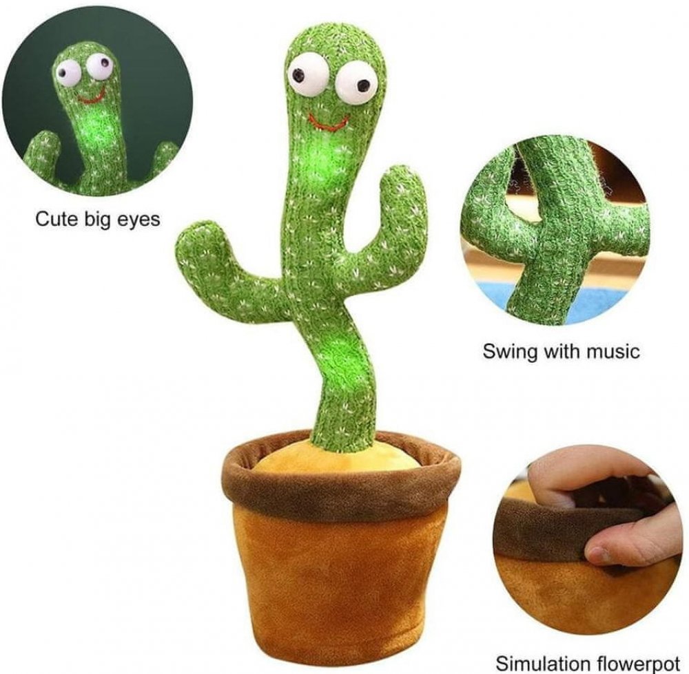 Plyšový tančící a zpívající kaktus, který zaujme pozornost dětí, ale spoustu zábavy si s ním užijí i dospělí! Kaktus je vysoký 30 cm a je napájen 3x AA bateriemi (nejsou součástí balení). Po zapnutí začne zpívat a bude u toho potrhle tancovat. Doporučujeme zkouknout video v popisku níže!