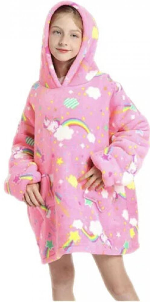 Leventi Svítící deka s rukávy a kapucí růžová
