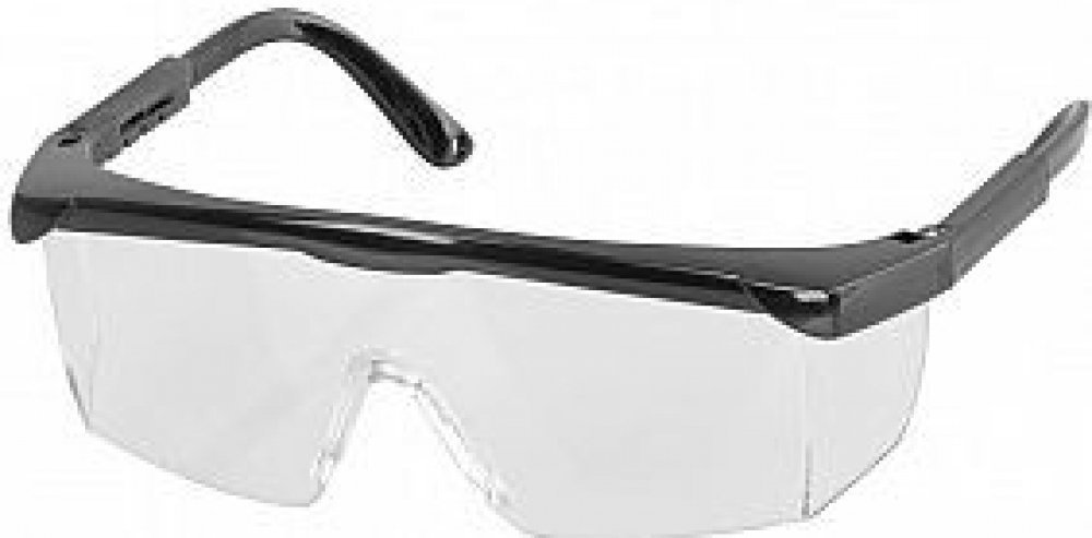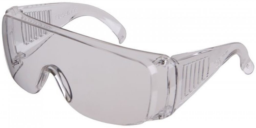 Čiré ochranné brýle s polykarbonátovým zorníkem a straničky.