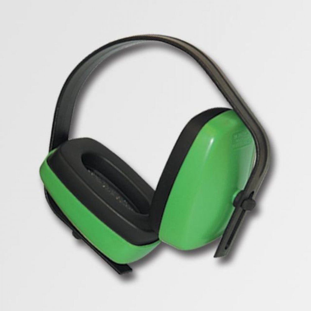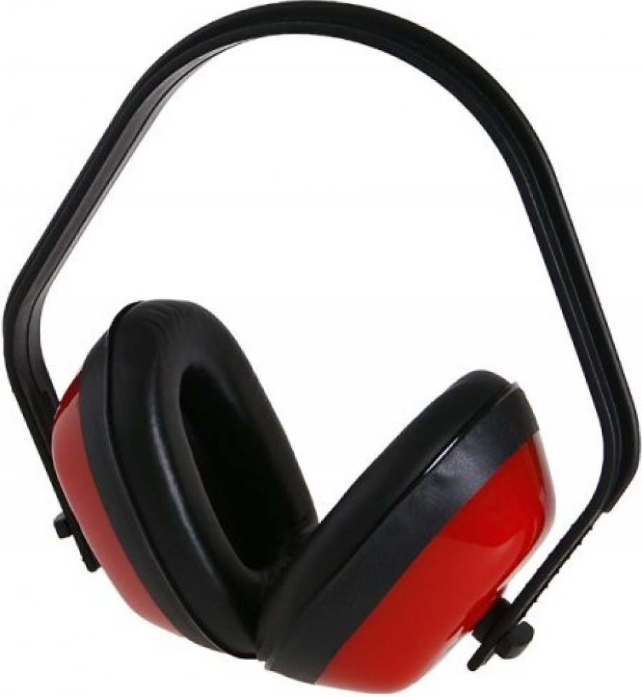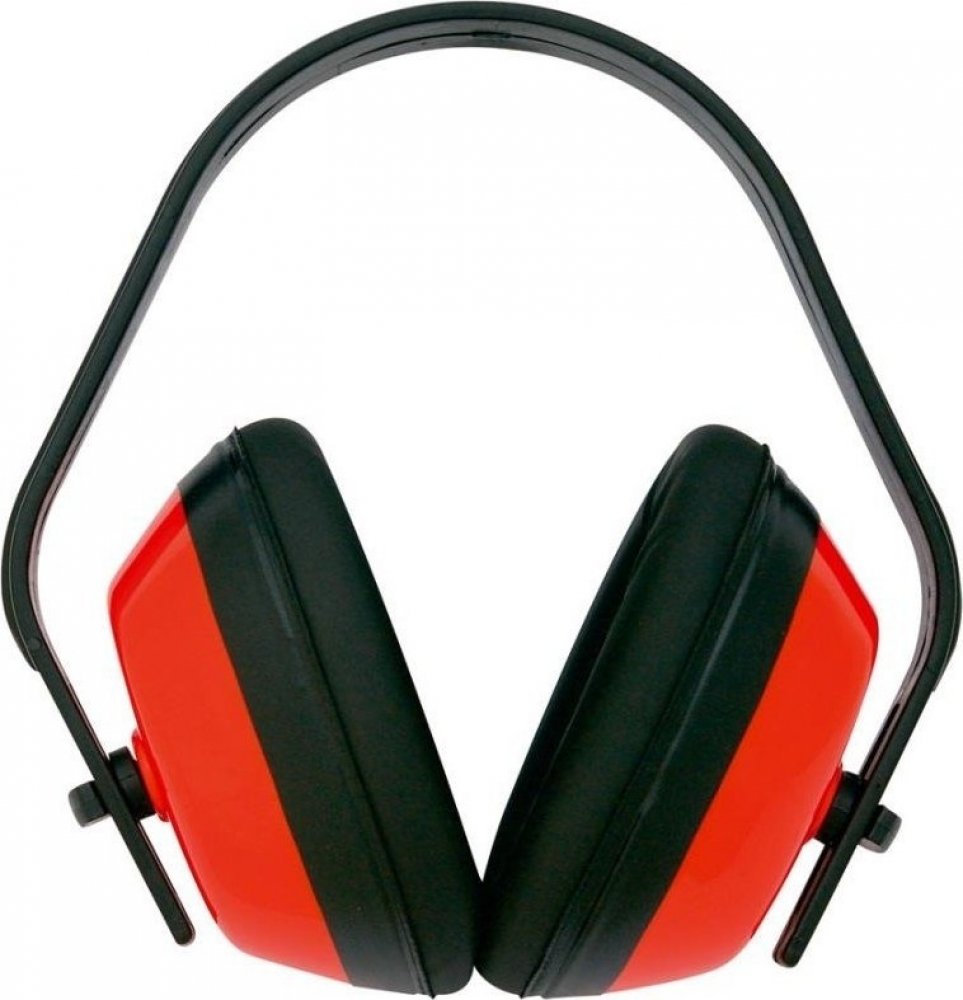 Červené ochranné sluchátka z ABS materiálu, PVC polštářky, možnost nastavení délky ,27 dB, CE EN 352-1.