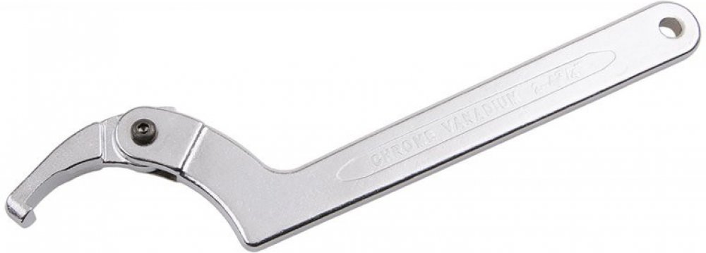Stavitelný hákový klíč pro límce, kroužky a ložiska. Jediná čelist s upínacím kolíkem v průmyslové povrchové úpravě. Při používání zajistěte přesné nasazení háku čelisti. Provedení: matný chromovaný povrch, kovaný, chrom vanadiová ocel.