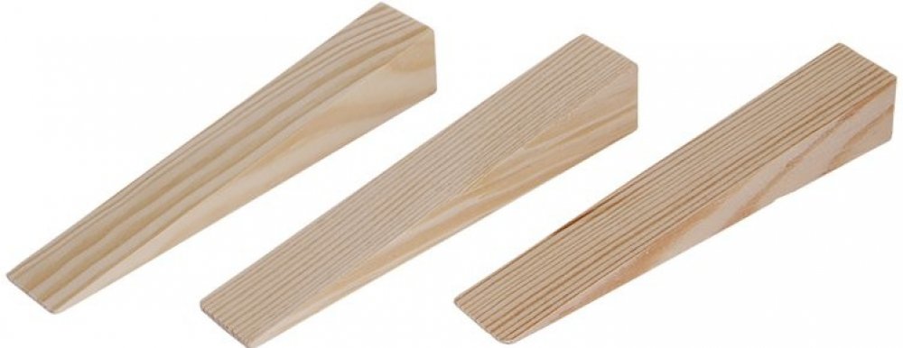 Dřevěné klínky (smrk), rozměr: 150 x 25 x 1-25 mm, množství: 8 ks, použití: pro osazování oken, zárubní a kovových konstrukcí, balení: blistr s eurootvorem.