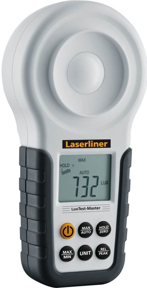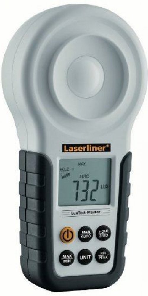 Profesionální měřící přístroj intenzity osvětlení na pracovištích, kancelářích, veřejných budovách a v průmyslu. Citlivá fotodioda s kosinovou korekcí pro širokoúhlé měření světla. Špičková funkce pro registraci rychlé změny v úrovni osvětlení. Funkce nulování. 1/4 závit na stativ. Rozsah měření 20 Lux...200000 Lux. Dodáno s: LuxTest-Master, baterie, přepravní kufr