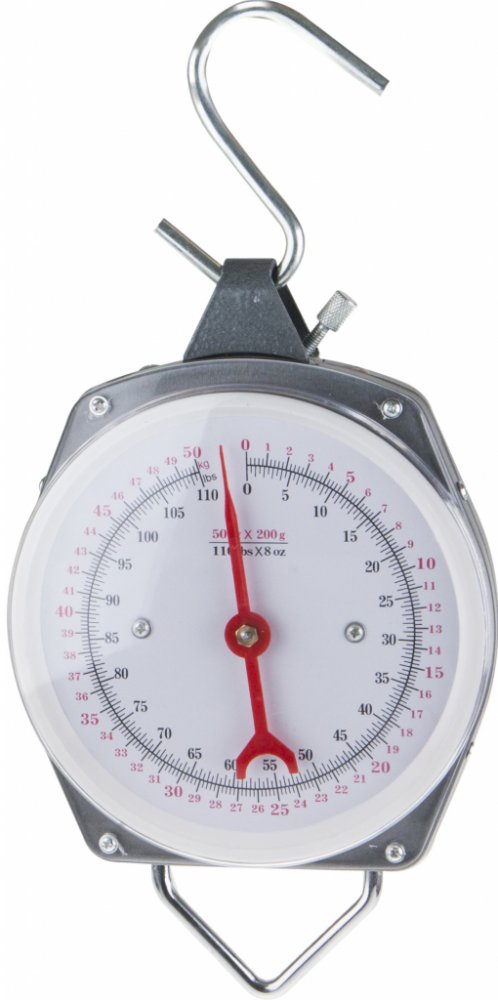 Závěsná váha na mechanickém principu s analogovou stupnicí. Jedná se o mechanický siloměr, který slouží pro měření a umožňuje zjišťování hmotnosti.