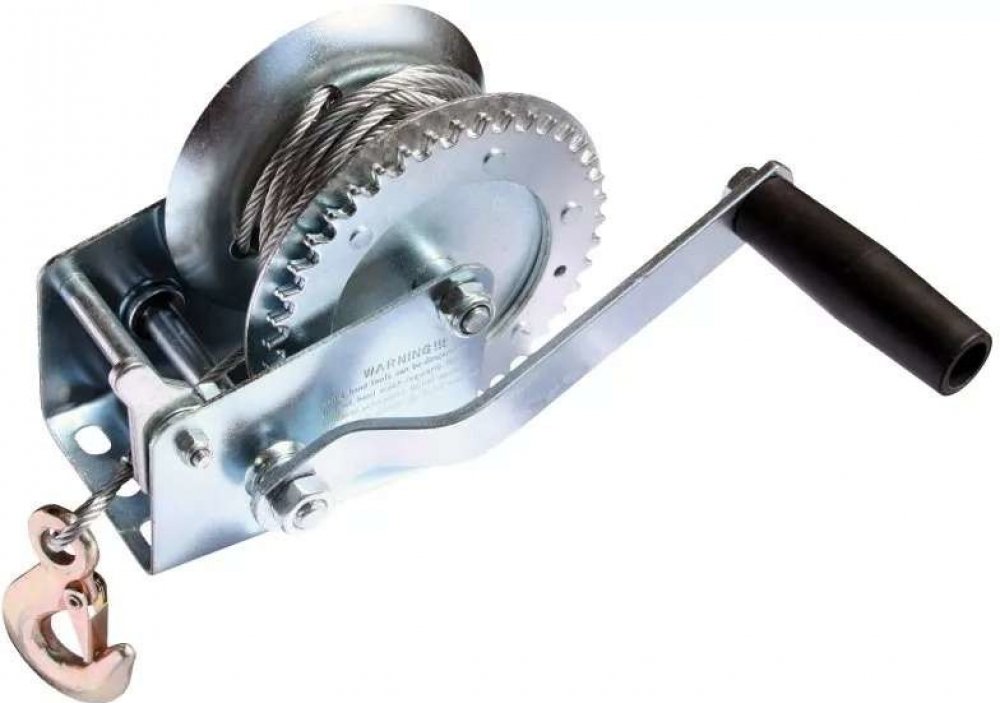 Ruční lanový naviják. Tažná síla 1350kg, délka ocelového lana 10m. Naviják je určen k přitahování břemen např. na přívěsné vozíky. Konstrukce a povrchová úprava odolává nepříznivým povětrnostním vlivům.