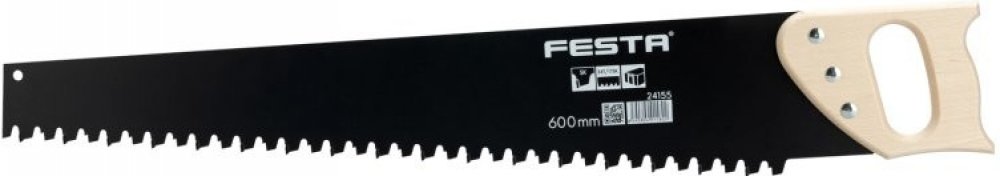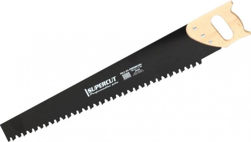 Profesionální ruční pila pro řezání pórobetonu a izolačních desek má ergonomickou masivní dřevěnou rukojeť a tuhý ocelový list s břitovými destičkami vyrobenými ze slinutého karbidu, který se postará o vynikající řezný výkon.
