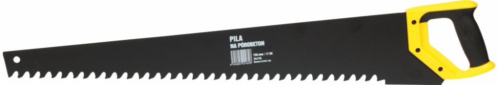 Délka pracovní plochy: 750mm; ABS rukojet s měkčenou TPR gumou, tuhý ocelový list s břitovými destičky ze slinutých karbidů zaručující dlouhodobý řezný výkon, počet osazených zubů: 34, rukojet´ umožnuje vyznačit úhly 45 a 90, pro řezání pórobetonových bloků a izolačních desek.