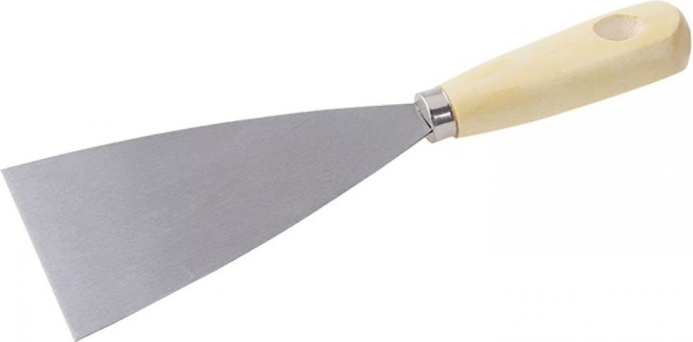 Špachtle ocelová 80 mm s dřevěnou ručkou. Špachtle se používá k nanášení a roztírání stavební sádry, tmelů nebo k očištění a odstranění starých tmelů, maleb či tapet. Díky trojúhelníkovému tvaru se materiál velmi snadno nanáší i odstraňuje.