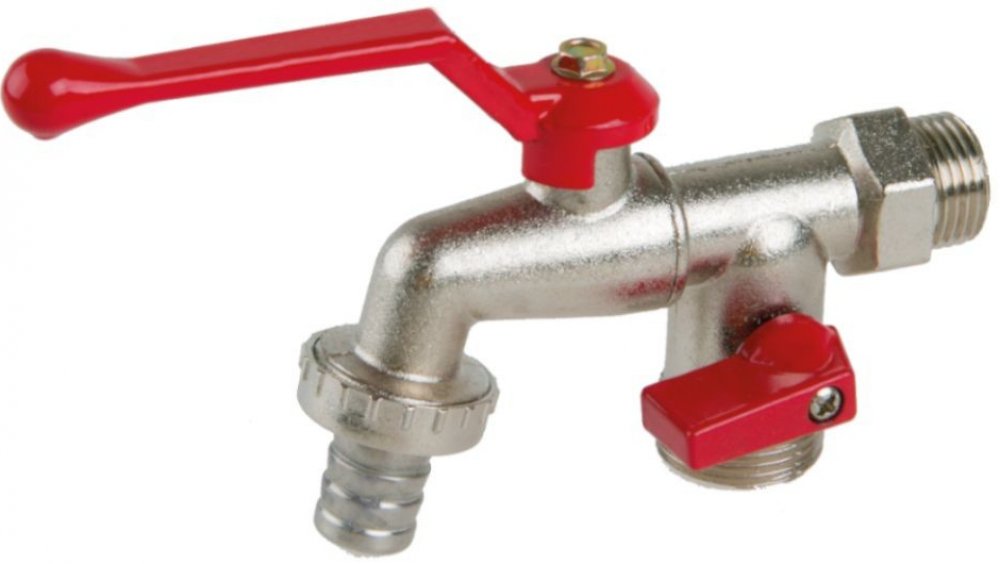 Zahradní ventil se dvěma vývody a ocelovou spouštěcí pákou. Tělo ventilu je vyrobeno z kvalitní slitiny zinku, která dobře odolává rzi a povětrnostním podmínkám.