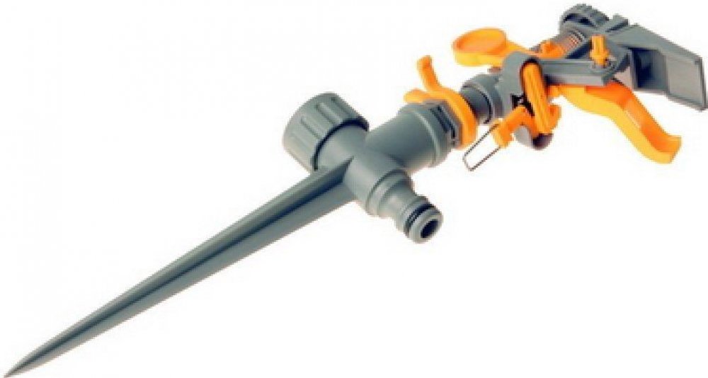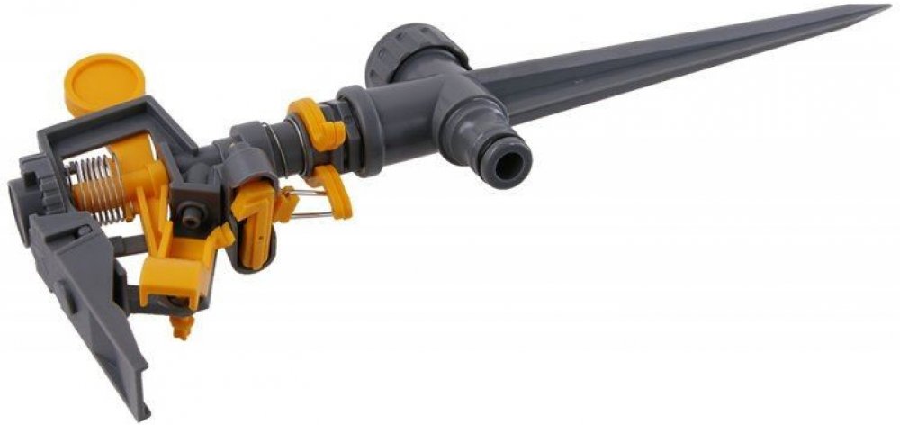 Hrotový dvoucestný impulzní zavlažovač s přípojením hadicovou rychlospojkou. Min.70 kPa a max.550 kPa.