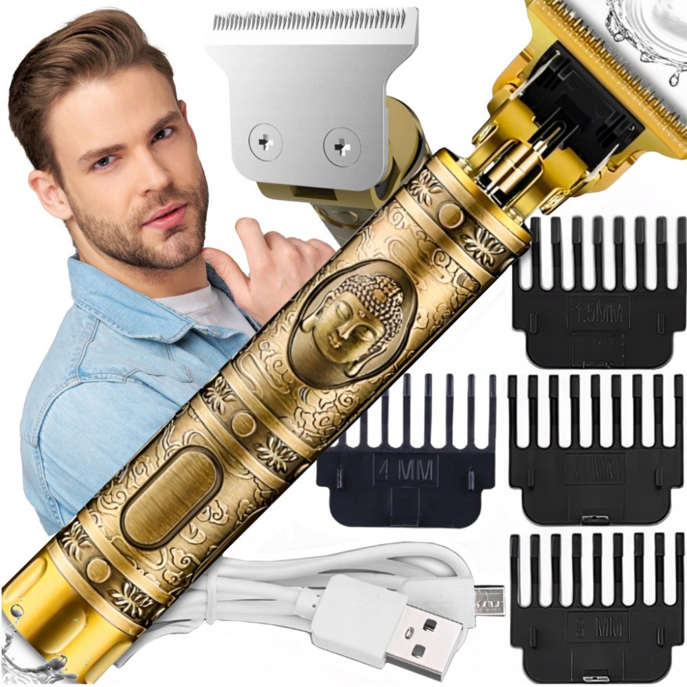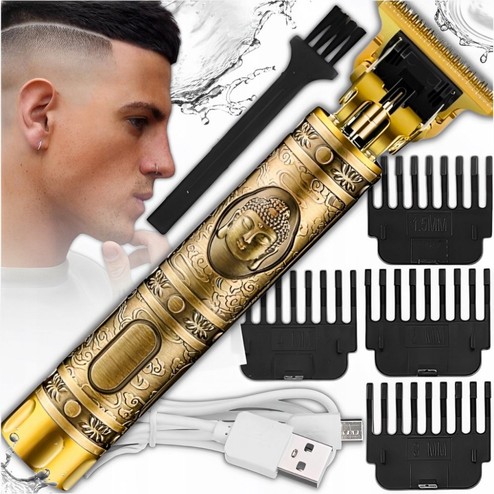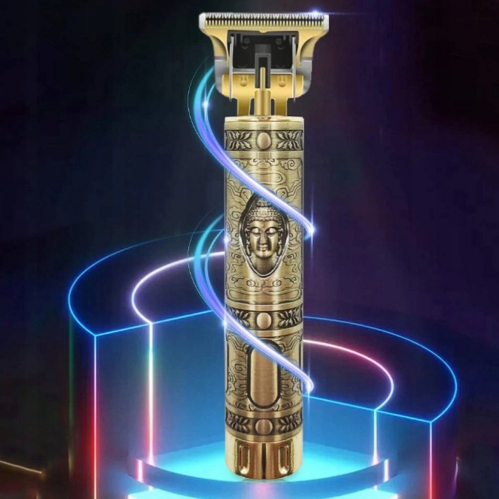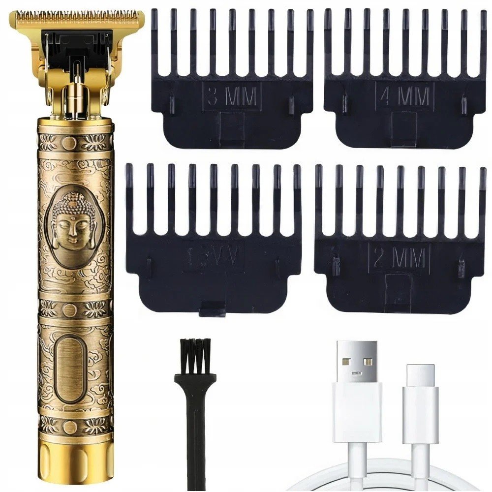 ⭐Nápadný klasický tvar: kulatý rukojeť se snadno drží a ovládá. Vzor knoflíku je umístěn na konci strojku na vlasy. Zlatý lesk podtrhne váš jedinečný a originální styl!