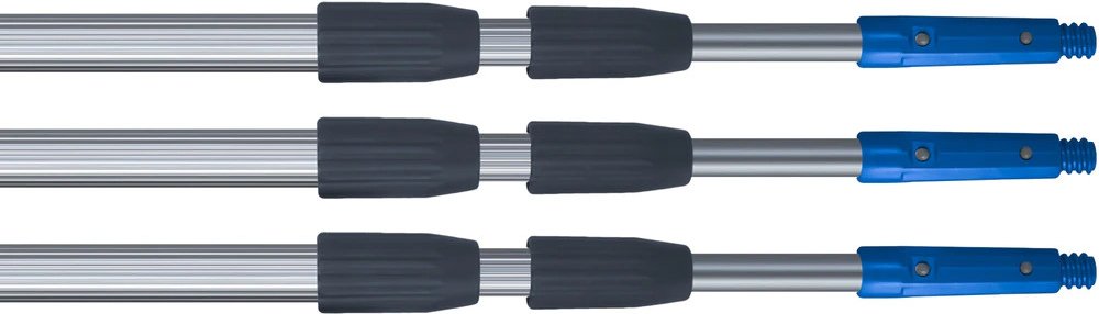 Dvou až čtyřsekční teleskopická tyč je složena z vnitřní hladké hliníkové sekce(í) a vnější hliníkové, proti prokluzu podélně vroubkované trubky. Vnitřní sekce má na spodní části segment, který brání protáčení. Každá vnější trubka je vůči trubce vnitřní uzavírána objímkou s jemným závitem, která zajišťuje dokonalou blokaci. Při práci s teleskopem je tedy možné vyvinout silný tlak, aniž by došlo k nežádoucímu posuvu pracovních pomůcek.Tyč je ukončena konusem s čepem umožňujícím pevné spojení tyče a používané pracovní pomůcky. Při výběru tyče je třeba brát v potaz: maximální dosah (počítat též s tím, že člověk drží tyč 120-160 cm nad zemí). úhel pod kterým budete pracovat nástroje, které budete používat (tlak jaký budete na tyč potřebovat vyvinout) Čím více tlaku a čím horší úhel, tím horší stabilita při maximálním vysunutí všech sekcí. Při modelové situaci komplikovaného čištění do 4m výšky doporučujeme tedy spíše teleskop 3x2m, než 2x2m. Pro klasické mytí oken a stěrkování do výšky 4m doporučujeme teleskop 3x1,5m (přesah 50cm). Teleskopy LEWI jsou velmi oblíbené mezi profesionály i mezi hobby uživateli. Důvod je jednoduchý. Výborná kvalita za bezkonkurenční cenu!