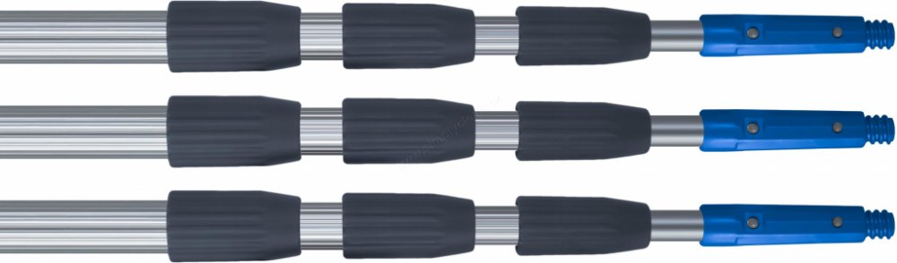 Dvou až čtyřsekční teleskopická tyč je složena z vnitřní hladké hliníkové sekce(í) a vnější hliníkové, proti prokluzu podélně vroubkované trubky. Vnitřní sekce má na spodní části segment, který brání protáčení. Každá vnější trubka je vůči trubce vnitřní uzavírána objímkou s jemným závitem, která zajišťuje dokonalou blokaci. Při práci s teleskopem je tedy možné vyvinout silný tlak, aniž by došlo k nežádoucímu posuvu pracovních pomůcek.Tyč je ukončena konusem s čepem umožňujícím pevné spojení tyče a používané pracovní pomůcky.