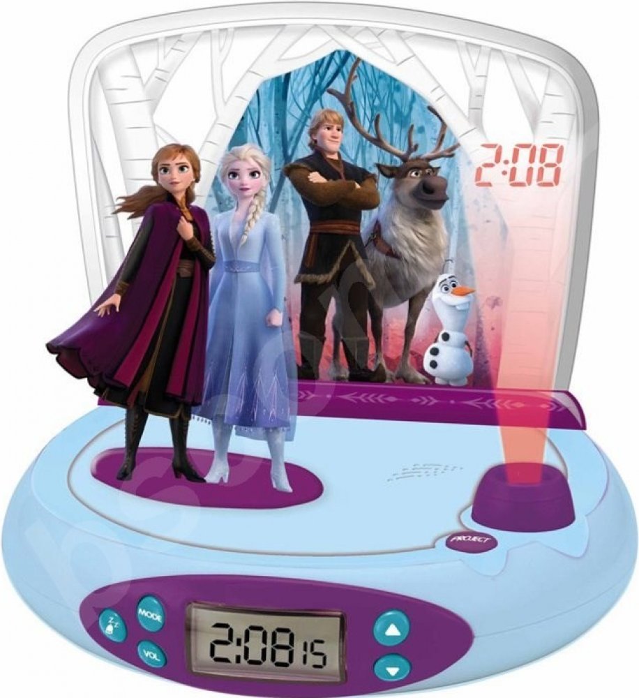 Dětský budík. Stisknutím tlačítka "PROJECT" promítnete čas na strop v místnosti. Objevte 4 skvělé zvukové efekty stisknutím postavičky. Stisknutím základny se zapne uklidňující noční světlo na 15 minut. Digitální zobrazení času na displeji LCD. Budík s funkcí opakovaného buzení. Napájení: 4 baterie LR6/AA (nejsou součástí dodávky). Navrženo a vyvinuto v Evropě - vyrobeno v Číně. Záruka: 2 roky.