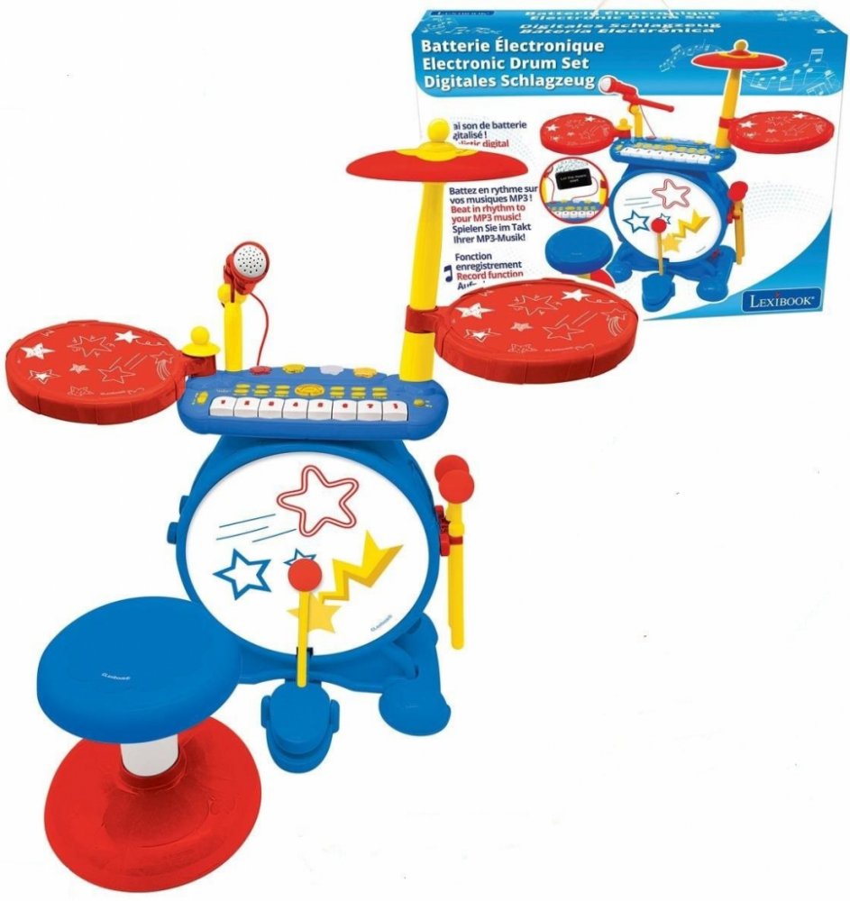 S naší úžasnou sadou 3 v 1 se obývák promění v pódium a z dětí jsou rázem rock’n’rollové hvězdy. Děti to rozjedou naplno: zahrát si na klávesy, na bicí a zazpívat si své oblíbené hity do mikrofonu je otázka jedné zkoušky. Tahle kompletní bicí sestava se sedátkem obsahuje basový buben, dva bicí bubny, činel a dvě paličky. Klavír s 8 klávesami přidá spoustu zábavných funkcí – zvuky 4 typů hudebních ...