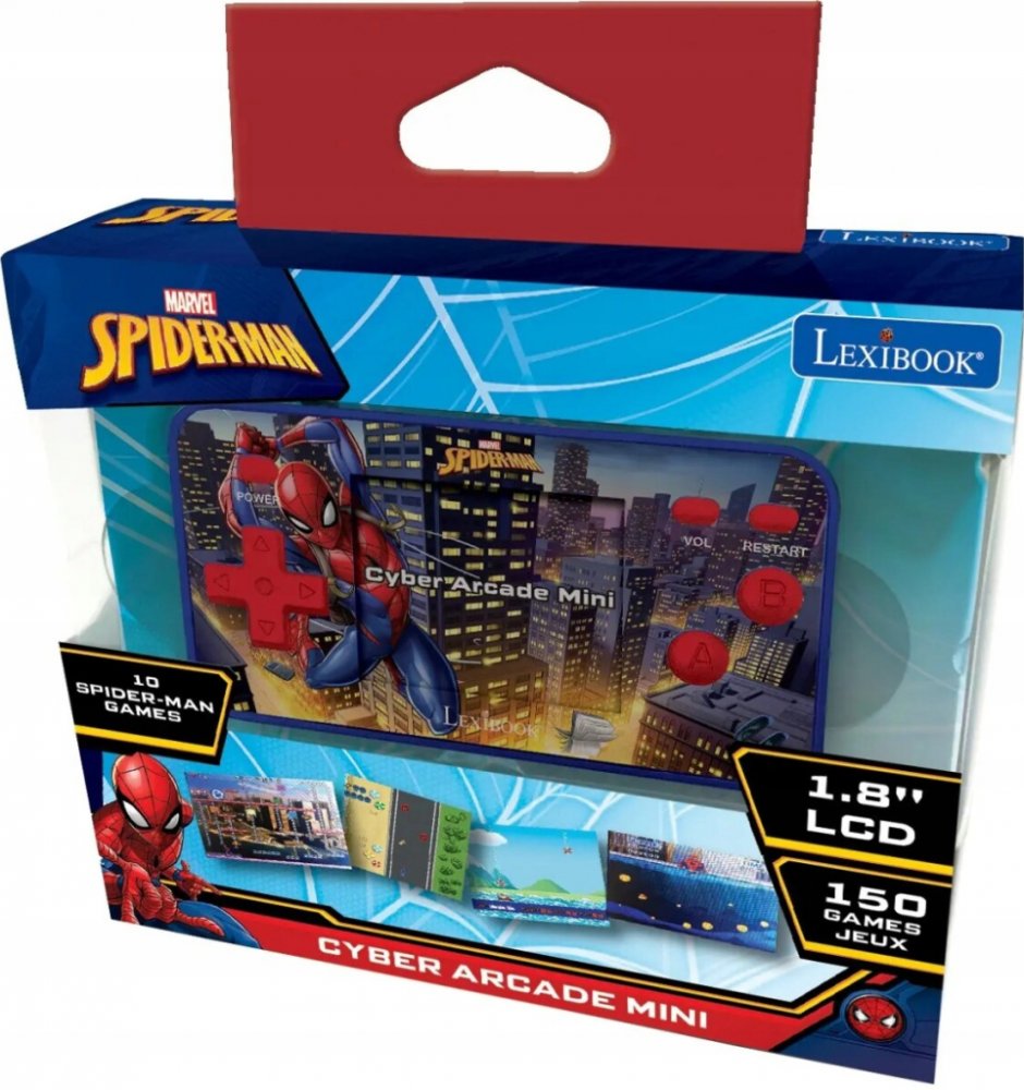 „Příruční konzole Cyber Arcade Pocket Spider-Man má 1,8'' 150 her včetně obrazovky. 10 se Spider-Manem JL1895SP“ – popis