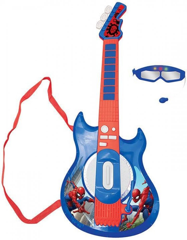 Rozvíjejte hudební talent svého dítěte s elektronickou kytarou s motivem Spidermana od společnosti Lexibook! Nástroj poskytuje zábavu i hudební vzdělání a uvádí děti od 3 let do světa hudby a rytmu. Součástí balení jsou brýle s mikrofonem. K napájení kytary jsou zapotřebí 3 baterie AAA/LR6, které je nutné zakoupit zvlášť.