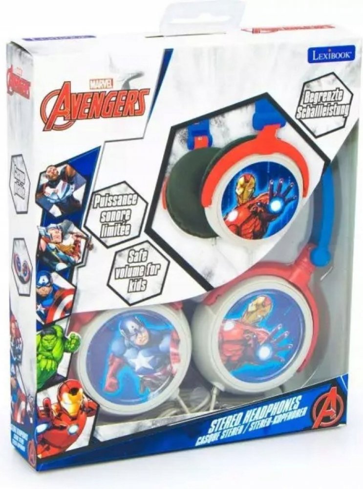 Hračka „Skládací drátová sluchátka Avengers s hlasitostí bezpečnou pro děti Lexibook HP010AV“ – popis