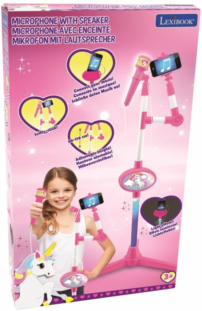 Mikrofon s vestavěným svítícím stativem a zvukovými efekty Jednorožec Lexibook S150UNI