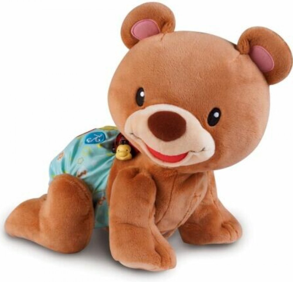 Po stisknutí srdíčka na zádech plyšáka, říká medvídek roztomilá slova a fráze a přitom pomalu leze. Medvídek učí poznávat barvy, tvary a hraje písničky. Medvídek je veselý kamarád, který svým pohybem i roztomilostí přitahuje pozornost dítěte, a zároveň ho blikajícími světly vyzývá k interakci. Rozvíjí motorické schopnosti u malých dětí Umí více než 50 slov, frází a 5 písniček Učí barvy, tvary a čí...