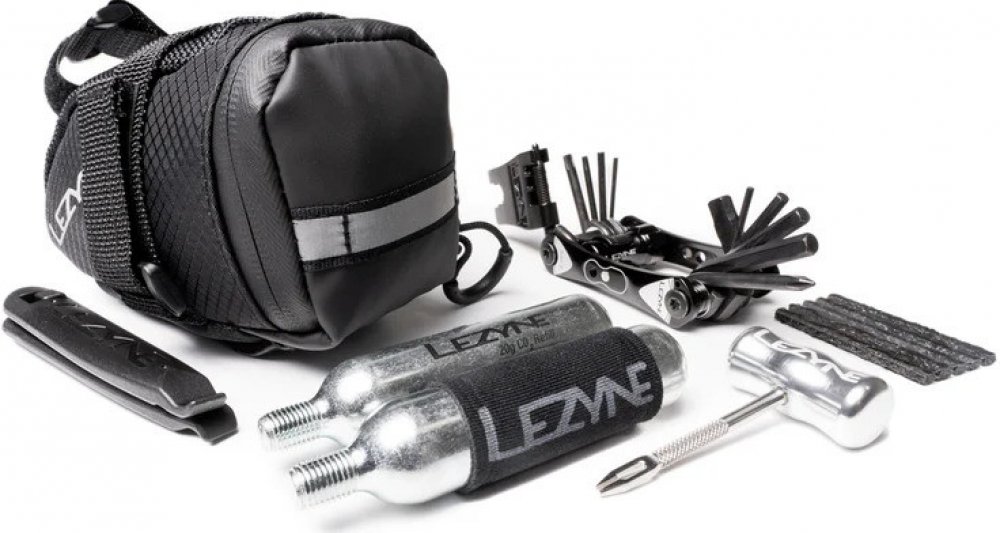 Podsedlová brašnička na kolo středního objemu z odolného tkaného nylonu. Pásky na suchý zip se připevňuje s ližinám sedla a k sedlovce. Má přehledný vnitřní organizér s označením jednotlivých kapes, nepromokavý zip a reflexní prvky pro lepší viditelnost jezdce. Objem 0,5 litru, hmotnost 75 gramů. Dodávána s kompletní sadou na opravu duše, které obsahuje dvě montpáky, samolepící záplaty, zdrsňovačk...