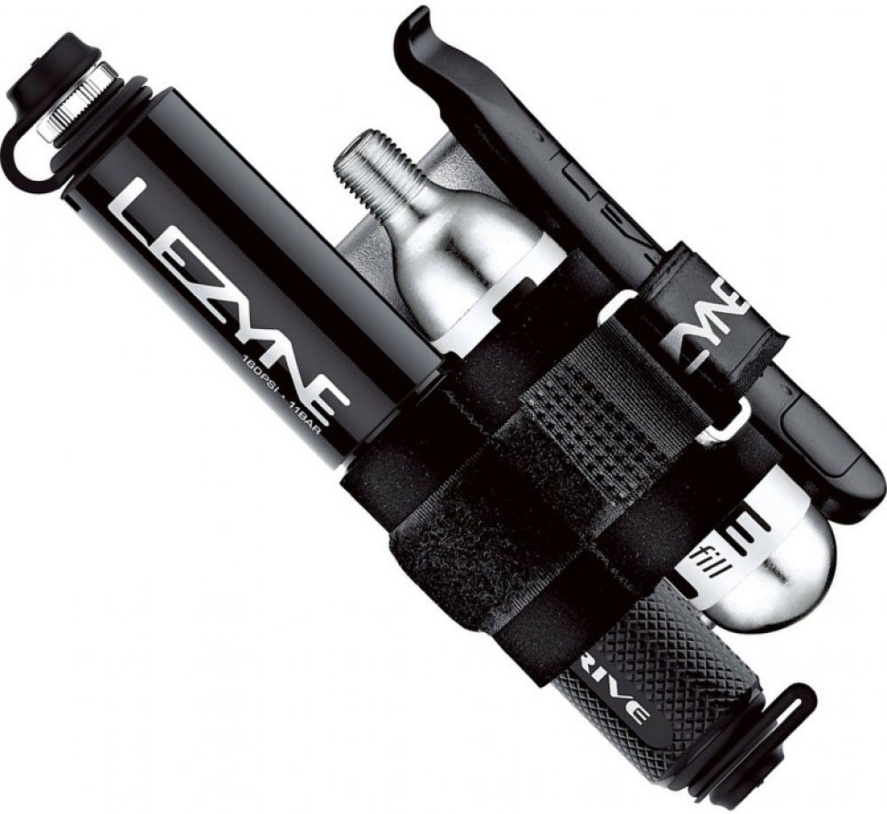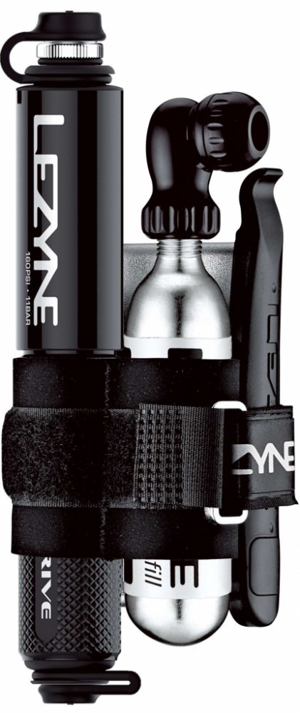 Součástí je sada na opravu duše v kompaktní a praktické hliníkové krabičce Lever Kit, pumpička pro extra rychlé, snadné a kontrolované nafouknutí kola pomocí CO2 bombiček Twin Speed Drive CO2 s 20g bombičkou a pásek na suchý zip Velcro Strap.