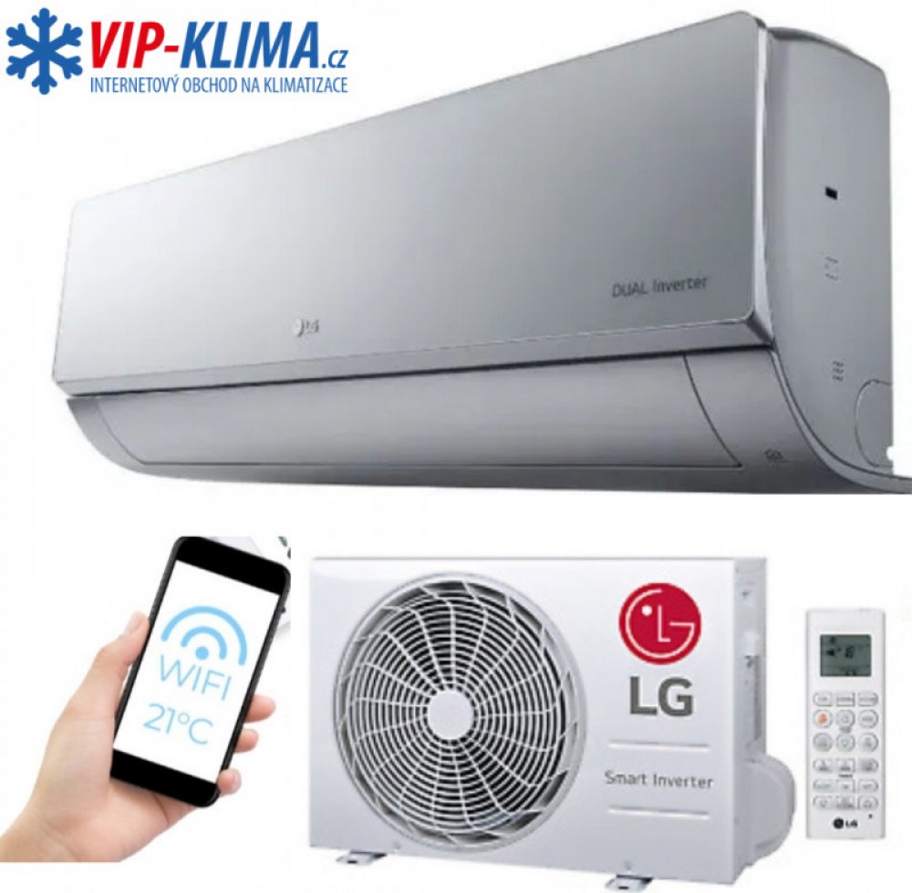 Nástěnná vnitřní jednotka LG ARTCOOL SILVER, chladící výkon 2,5 kW, energetická třída A++/A+, super tichý provoz vnitřní – 19 dB, integrované WiFi ovládání, automatické čištění, aktivní řízení el. energie, . . .