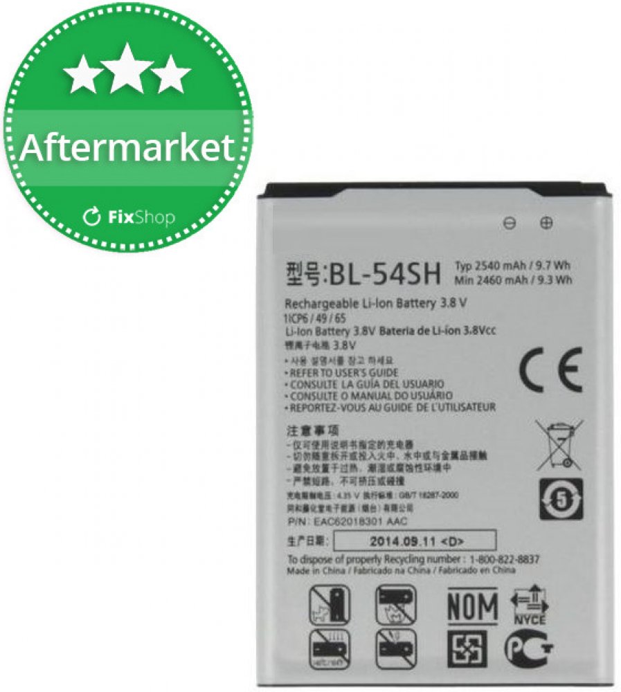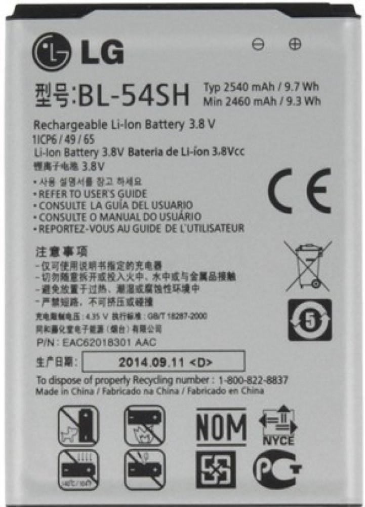 Originální baterie LG BL-54SH typu Li-Ion pro mobilní telefony. Nemá paměťový efekt a je chráněna proti přebití, přepólování a přehřátí. Baterie se prodává v balení typu bulk.