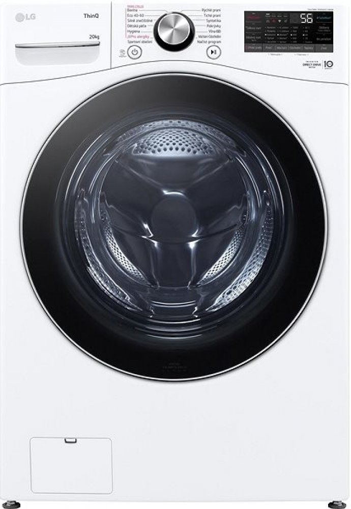 Objevte parní pračku 20 kg třídy B, 1000 ot./min s technologií TurboWash, Steam parní praní, Direct Drive™, ThinQ™ a AI DD™ v bílé barvě – LG F0P3CYV2W.