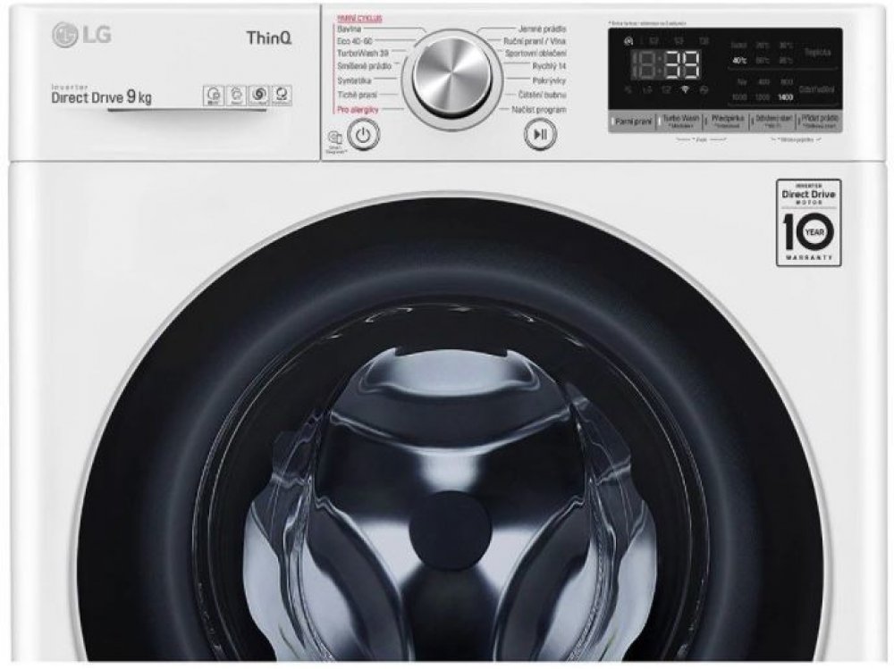 LG 9 kg 71 dB přední volně stojící bílé 1400 ot./min 19 h invertorový levé A A 50 l A 50 kWh 9 kg 56.5 cm 60 cm 68 l 85 cm 74 kg 70 kg 14 9 kg 228 min