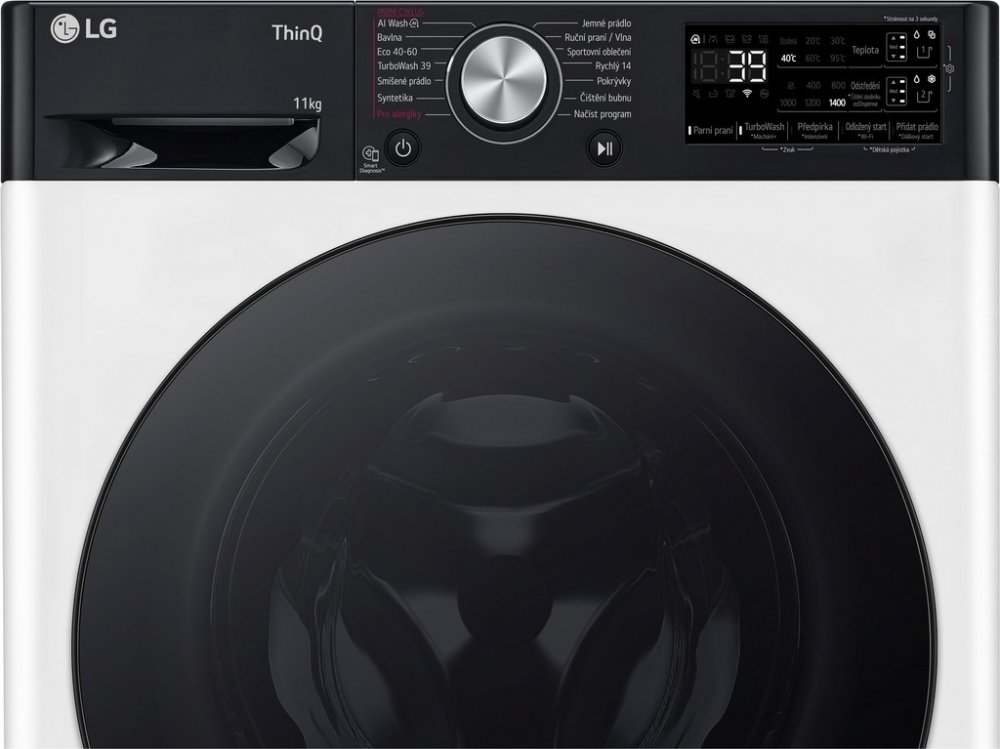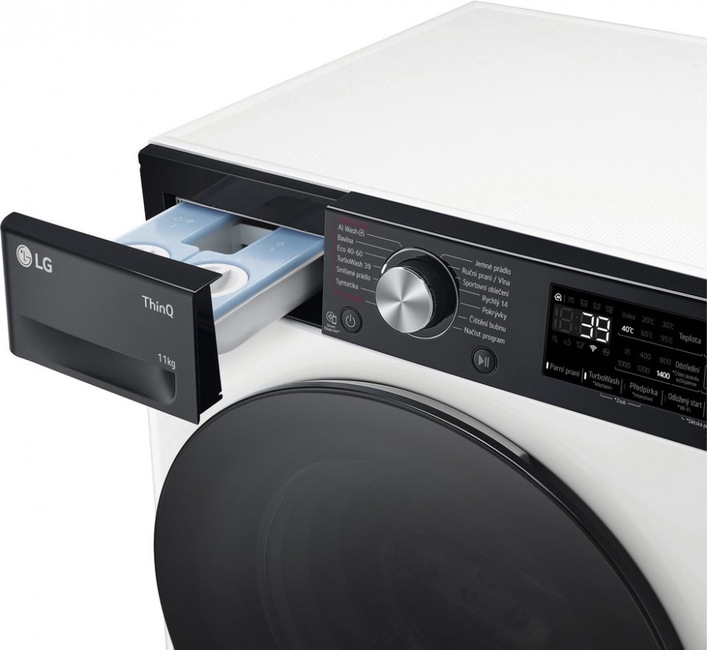 LG 11 kg 71 dB přední volně stojící bílé 1400 ot./min invertorový levé A A A 54 l A 4800 kWh 47.5 cm 60 cm 85 cm 71 kg 14 11 kg 240 min