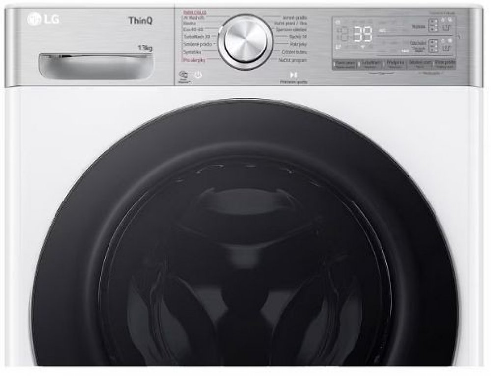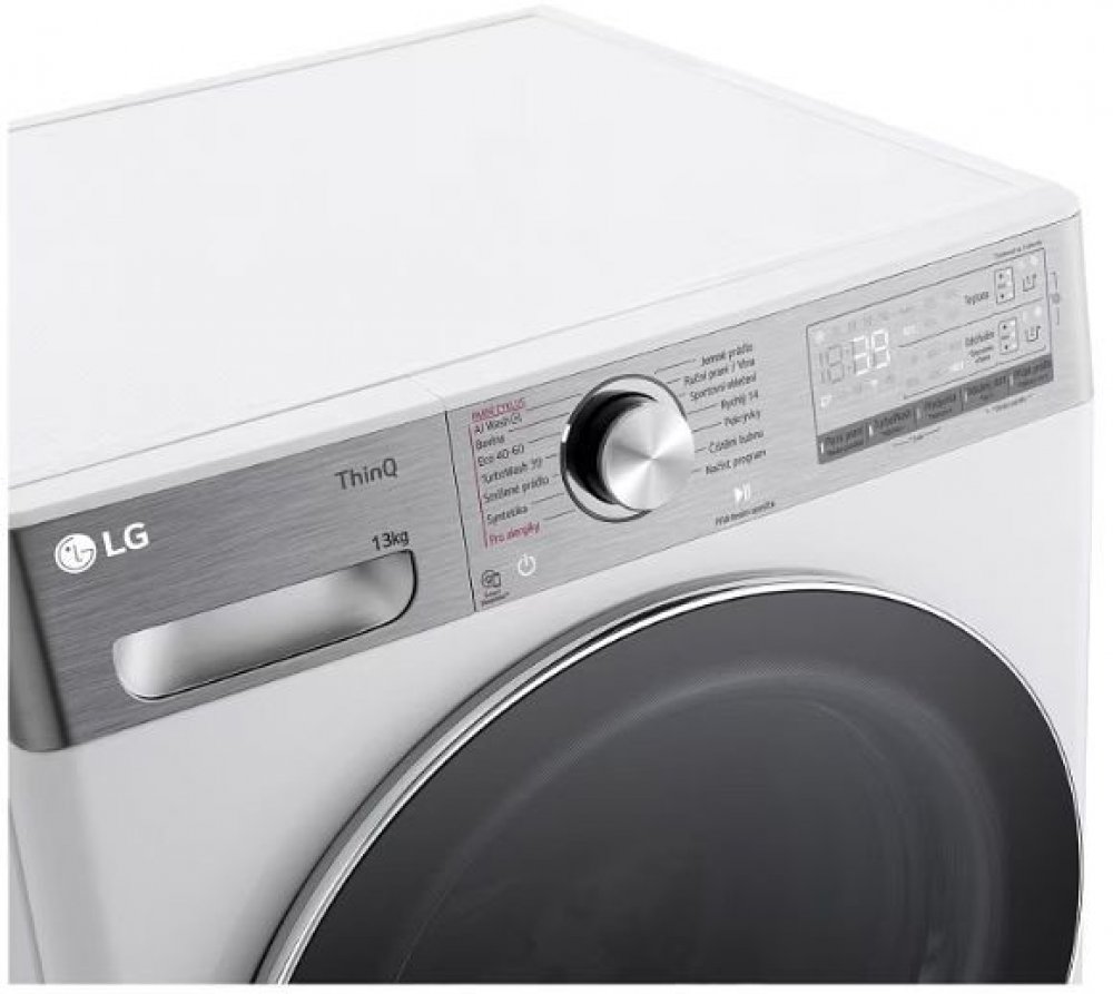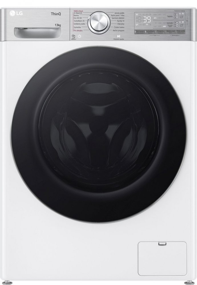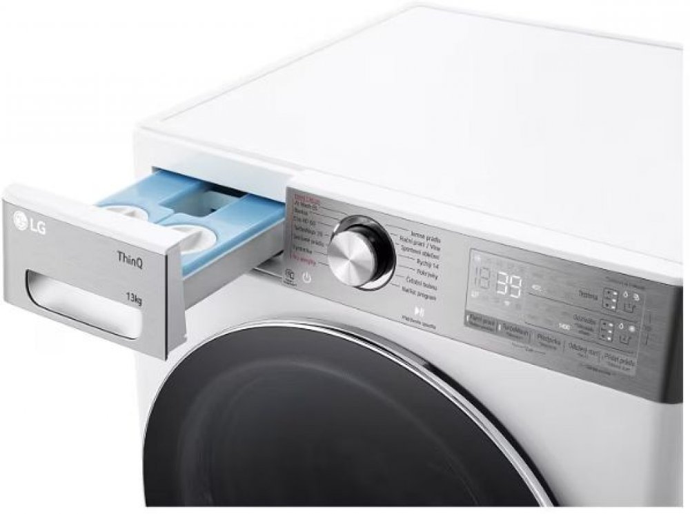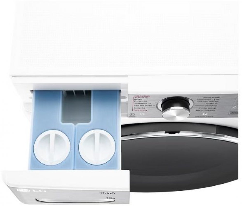 Pračka s kapacitou 13 kg, 1400 otáček, 14 programů, LG ThinQ + Wi-Fi, inverter Direct DriveTM motor (10 let záruka), AI DD, TurboWash 360, Steam+, ezDispense, přidat prádlo (Add Item)