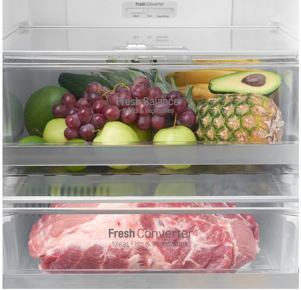 Různé potraviny zůstávají čerstvé při různých teplotách, ale jak toho docílit v jedné chladničce? Společnost LG zná odpověď – FRESH Converter, zásuvka, která umožňuje vybrat správnou teplotu pro uchování masa, ryb nebo zeleniny.
