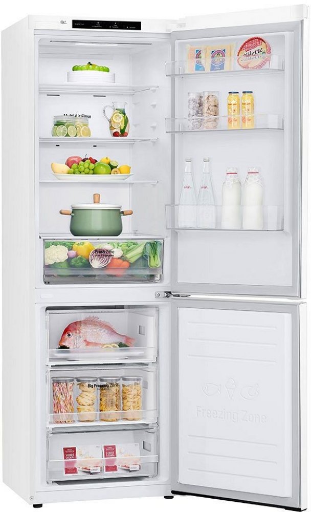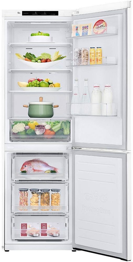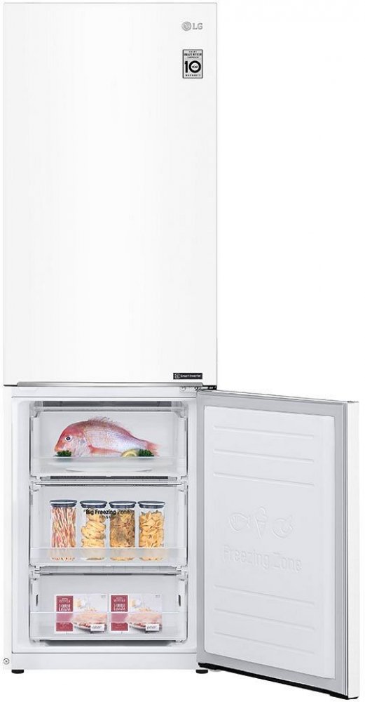 LG bílé 1 volně stojící NoFrost kombinované E 0.7 kWh/24h 16 h 36 dB SN-N-ST-T 253 kWh C 68.2 cm 186 cm 59.5 cm 76 kg 72 kg 373 l 234 l 107 l 12 kg/24 hod dole 3 ks **** 3 ks skleněné R600a