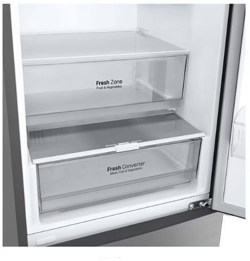 Kombinovaná chladnička LG GBP62PZNBC je ideálním místem pro skladování zásob. Je vybavena technologií Door Cooling+™, která udrží vaše potraviny déle čerstvé. Zároveň vás spotřebič potěší nízkou spotřebou, jeho provoz totiž zajišťuje úsporný invertorový lineární kompresor LG.