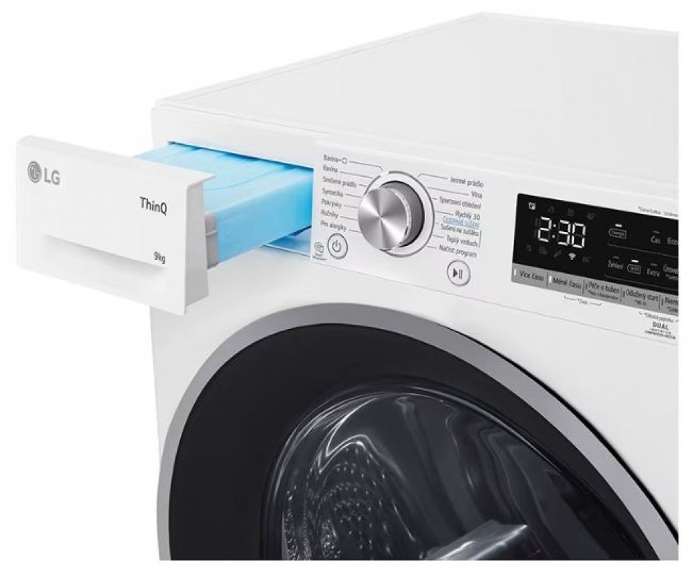 - LG ThinQ + Wi-Fi připojení – ovládání na dálku, načtení programu a inteligentní diagnostika (Smart Diagnosis™ 3.0)